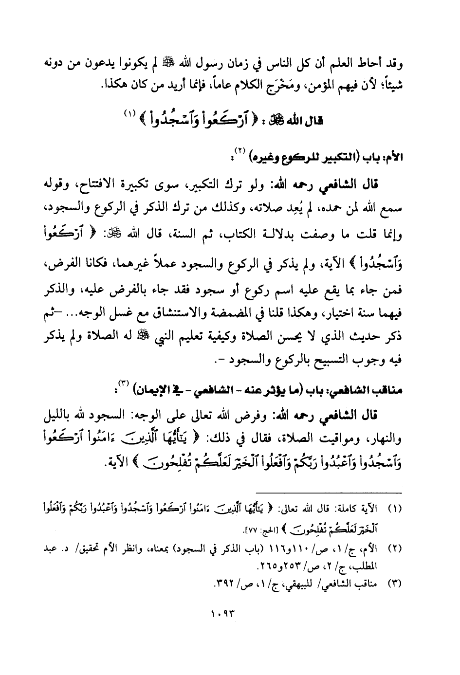 قال الشَّافِعِي رحمه الله: وفرض الله تعالى على الوجه: السجود للهِ بالليل