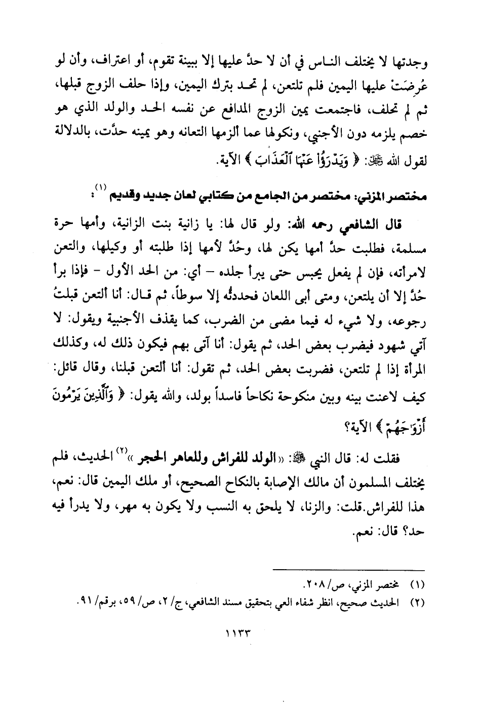 مختصر المزني: مختصر من الجامع من كتابي لعان جديد وقديم: