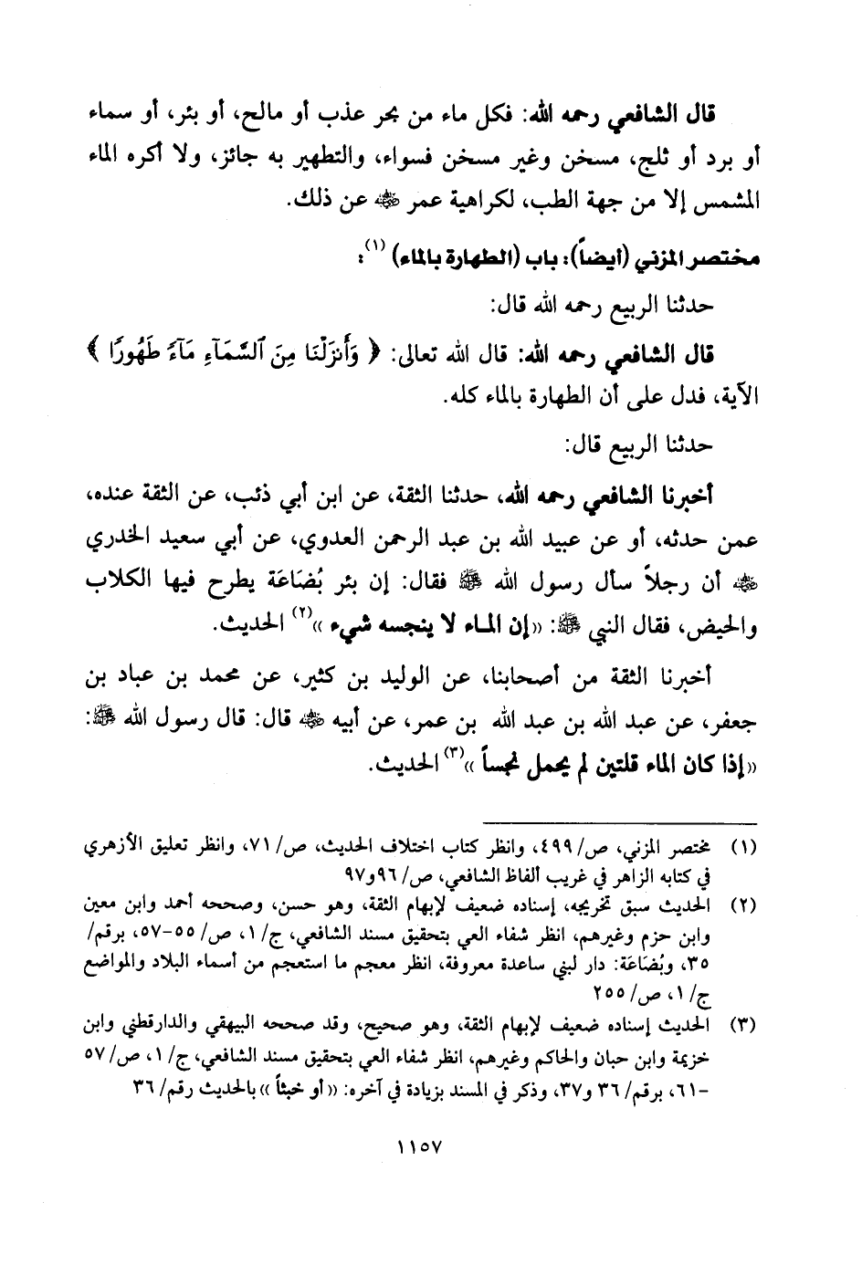 قال الشَّافِعِي رحمه الله: قال الله تعالى: (وَأَنْزَلْنَا مِنَ السَّمَاءِ مَاءً طَهُورًا)