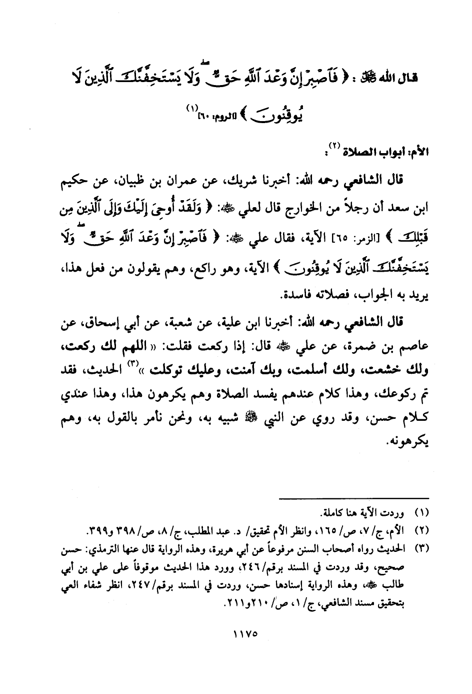 قال الشَّافِعِي رحمه الله: أخبرنا ابن علية، عن شعبة، عن أبي إسحاق، عن