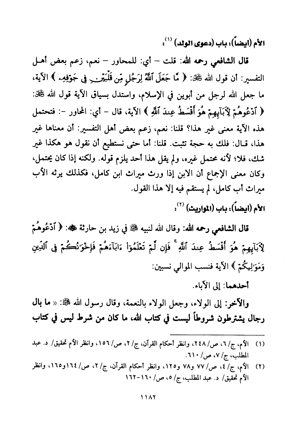 قال الشَّافِعِي رحمه الله: وقال اللَّه لنبيه - صلى الله عليه وسلم - في زيد بن حارثة - رضي الله عنه -: