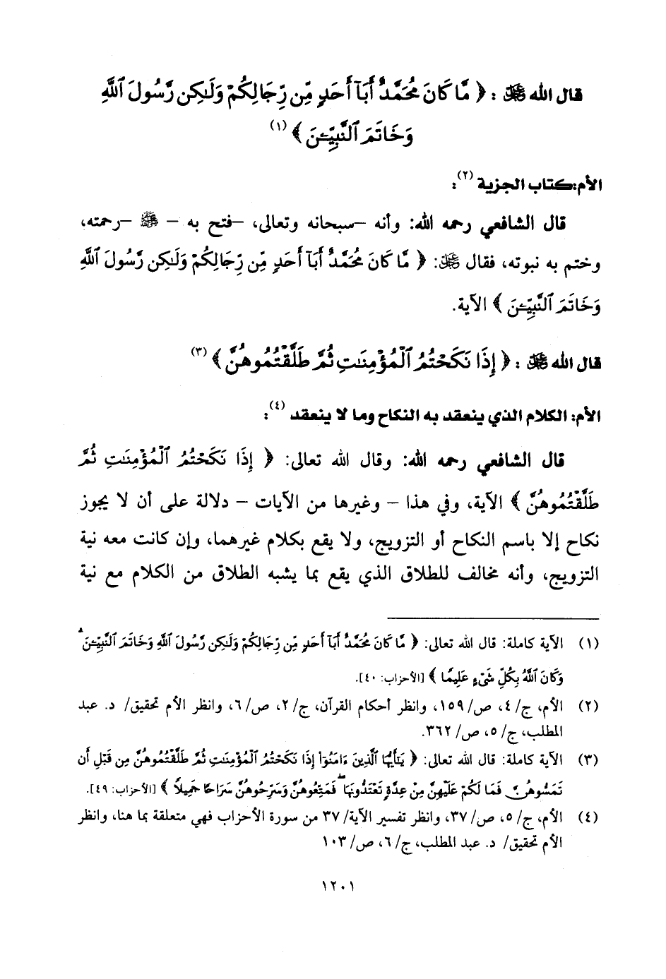 قال الشَّافِعِي رحمه الله: وقال الله تعالى: (إِذَا نَكَحْتُمُ الْمُؤْمِنَاتِ ثُمَّ طَلَّقْتُمُوهُنَّ) الآية، وفي هذا - وغيرها من الآيات - دلالة على أن لا يجوز