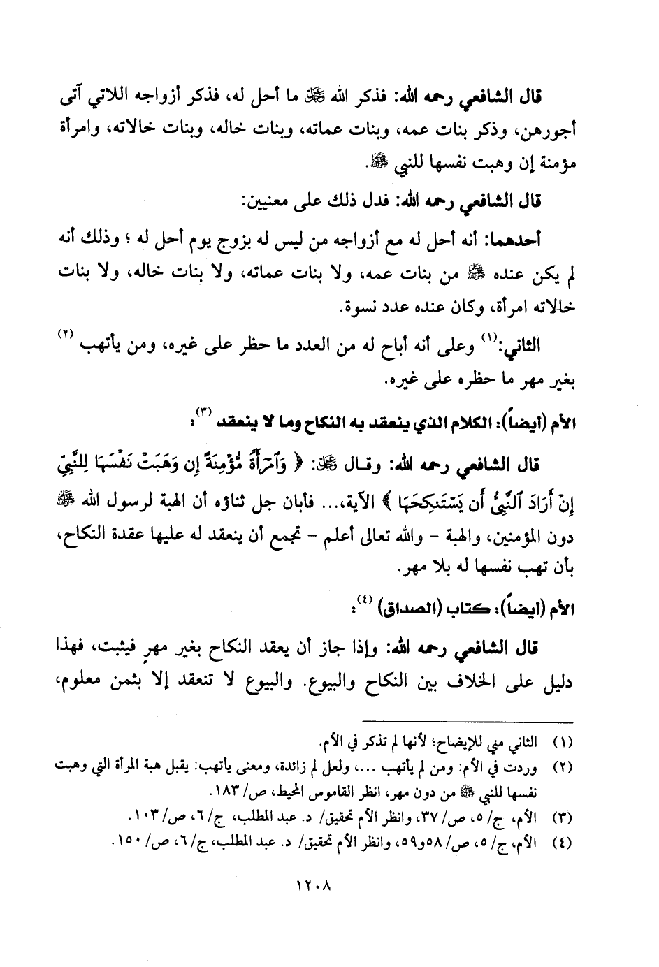 قال الشَّافِعِي رحمه الله: وقال عزَّ وجلَّ: (وَامْرَأَةً مُؤْمِنَةً إِنْ وَهَبَتْ نَفْسَهَا لِلنَّبِيِّ إِنْ أَرَادَ النَّبِيُّ أَنْ يَسْتَنْكِحَهَاا) الآية،. ..