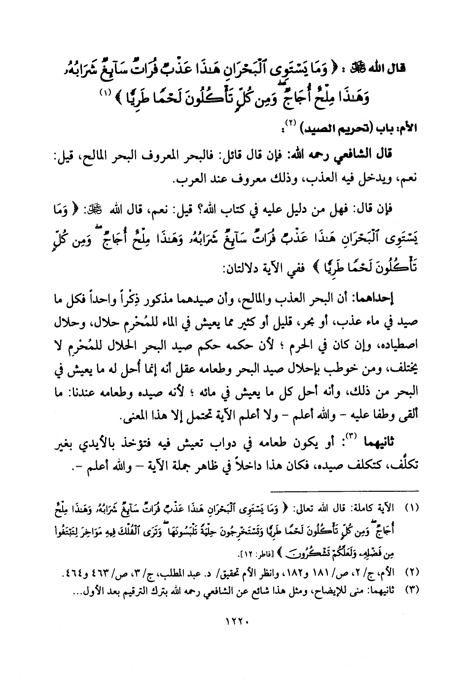 قال الشَّافِعِي رحمه الله: فإن قال قائل: فالبحر المعروف البحر المالح، قيل: