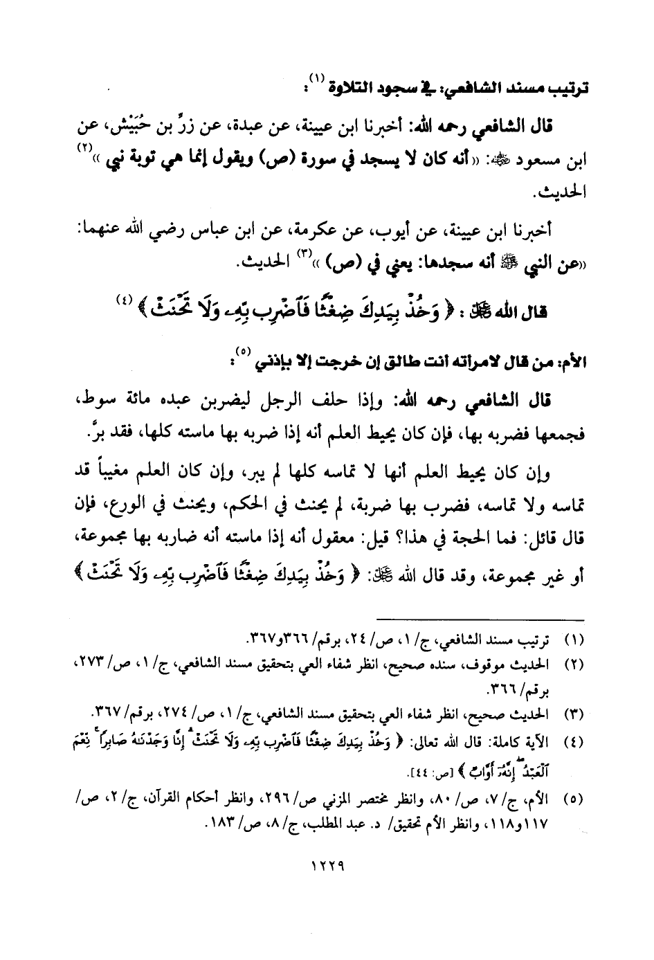 ترتيب مسند الشَّافِعِي في سجود التلاوة: