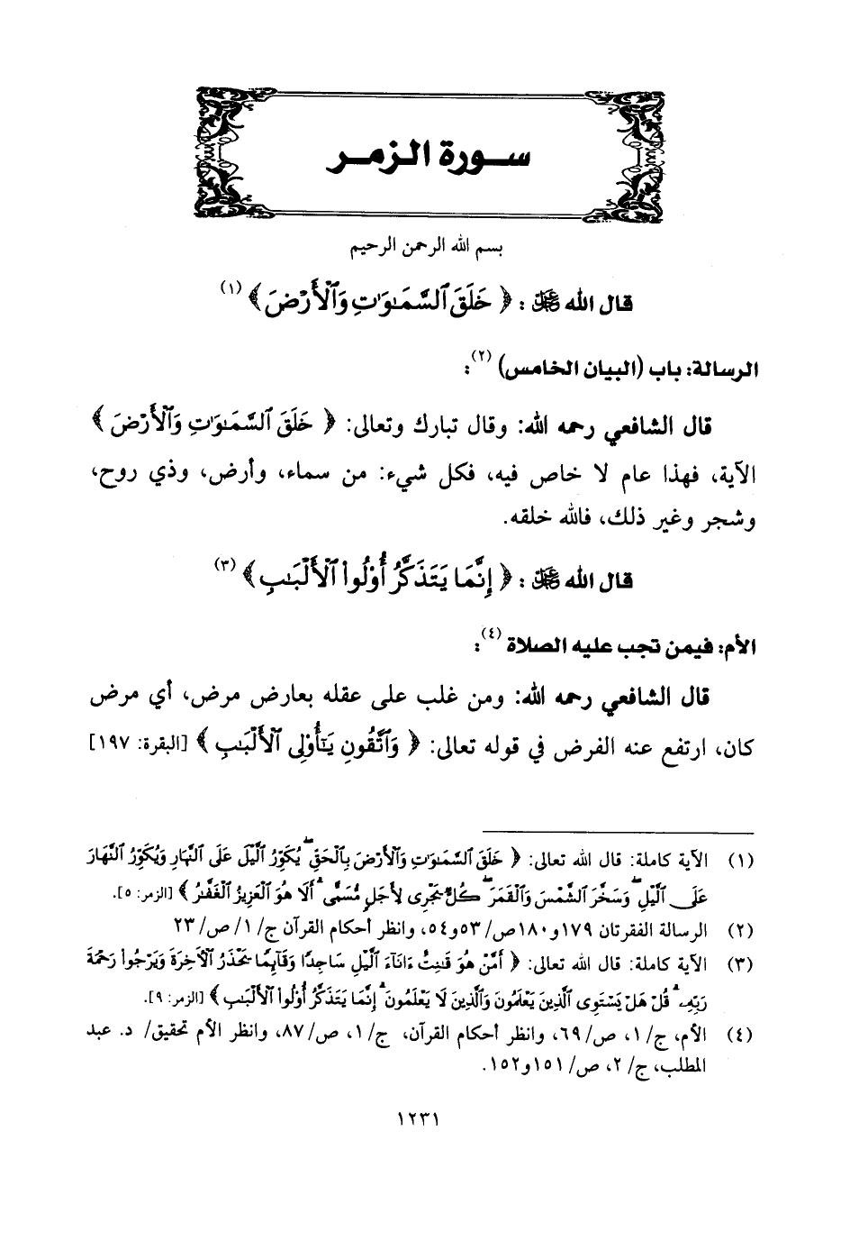 قال الشَّافِعِي رحمه الله: وقال تبارك وتعالى: (خَلَقَ السَّمَاوَاتِ وَالْأَرْضَ)