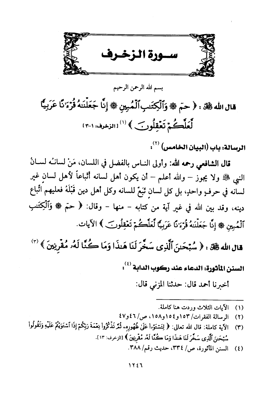 قال الله عزَّ وجلَّ: (حم (1) وَالْكِتَابِ الْمُبِينِ (2) إِنَّا جَعَلْنَاهُ قُرْآنًا عَرَبِيًّا لَعَلَّكُمْ تَعْقِلُونَ (3)