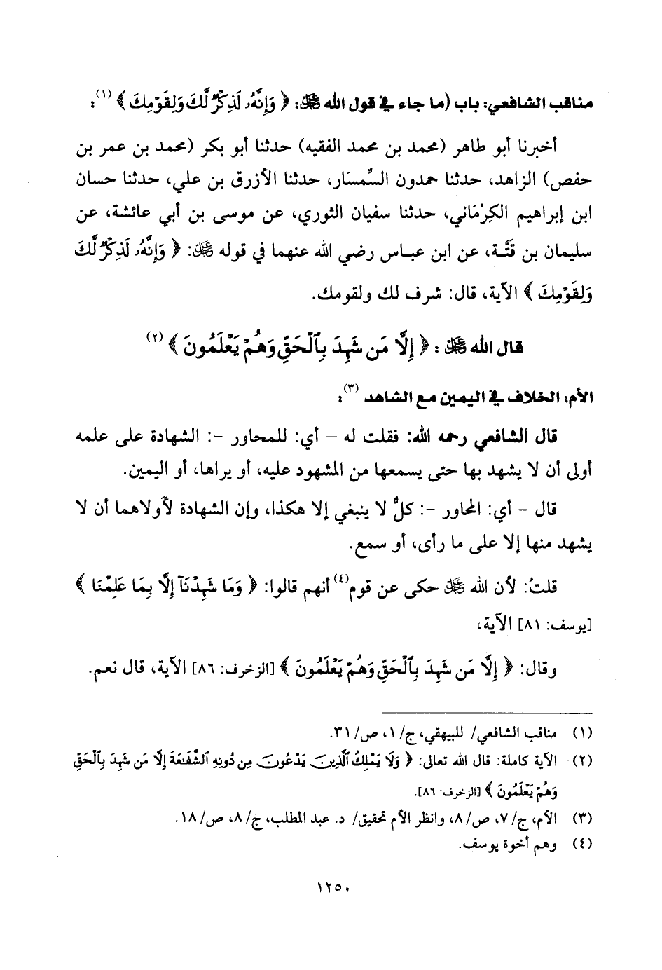 مناقب الشَّافِعِي: باب (ما جاء في قول الله عزَّ وجلَّ: (وَإِنَّهُ لَذِكْرٌ لَكَ وَلِقَوْمِكَ) :