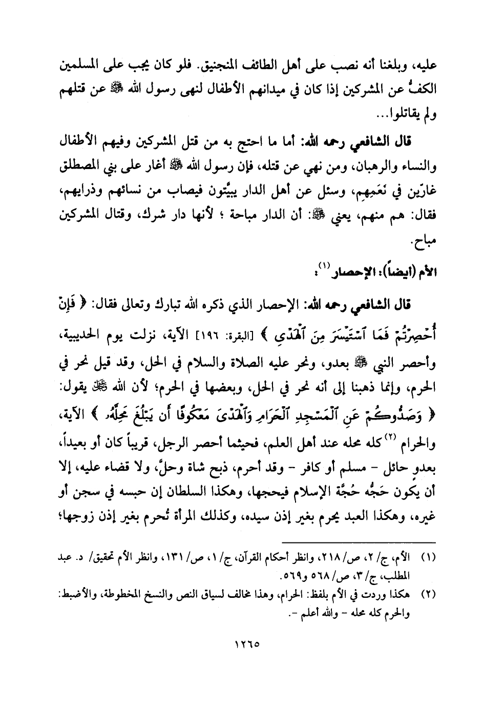 قال الشَّافِعِي رحمه الله: الإحصار الذي ذكره اللَّه تبارك وتعالى فقال: