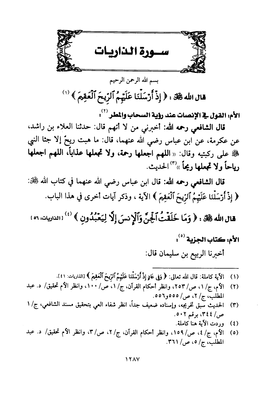 الأم: القول في الإنصات عند رؤية السحاب والمطر: