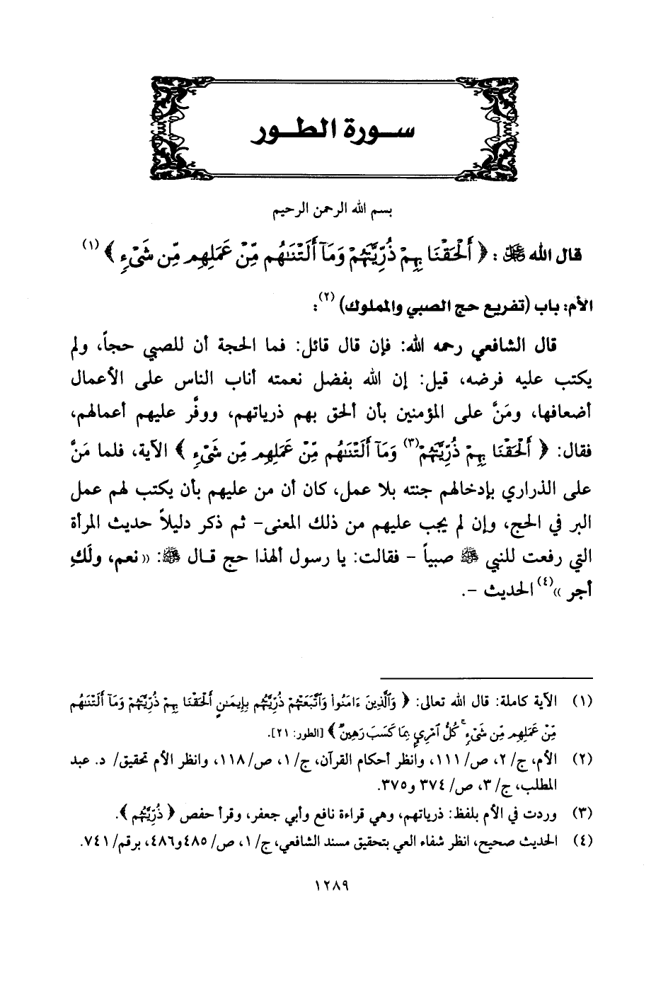 قال الله عزَّ وجلَّ: (وَالَّذِينَ آمَنُوا وَاتَّبَعَتْهُمْ ذُرِّيَّتُهُمْ بِإِيمَانٍ أَلْحَقْنَا بِهِمْ ذُرِّيَّتَهُمْ وَمَا أَلَتْنَاهُمْ مِنْ عَمَلِهِمْ مِنْ شَيْءٍ)