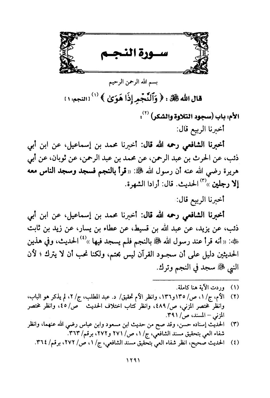 قرأ بالنجم فسجد وسجد الناس معه إلا رجلين" الحديث.