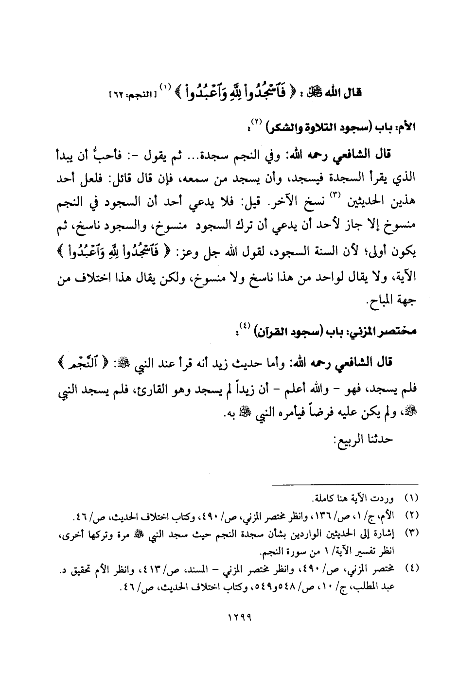 قال الشَّافِعِي رحمه الله: وأما حديث زيد أنه قرأ عند النبي - صلى الله عليه وسلم -: (النجم)