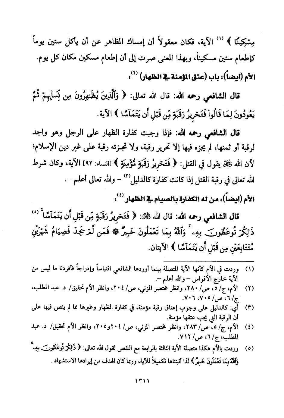قال الشَّافِعِي - رحمه الله -: قال الله تعالى: (وَالَّذِينَ يُظَاهِرُونَ مِنْ نِسَائِهِمْ ثُمَّ يَعُودُونَ لِمَا قَالُوا فَتَحْرِيرُ رَقَبَةٍ مِنْ قَبْلِ أَنْ يَتَمَاسَّا) الآية.