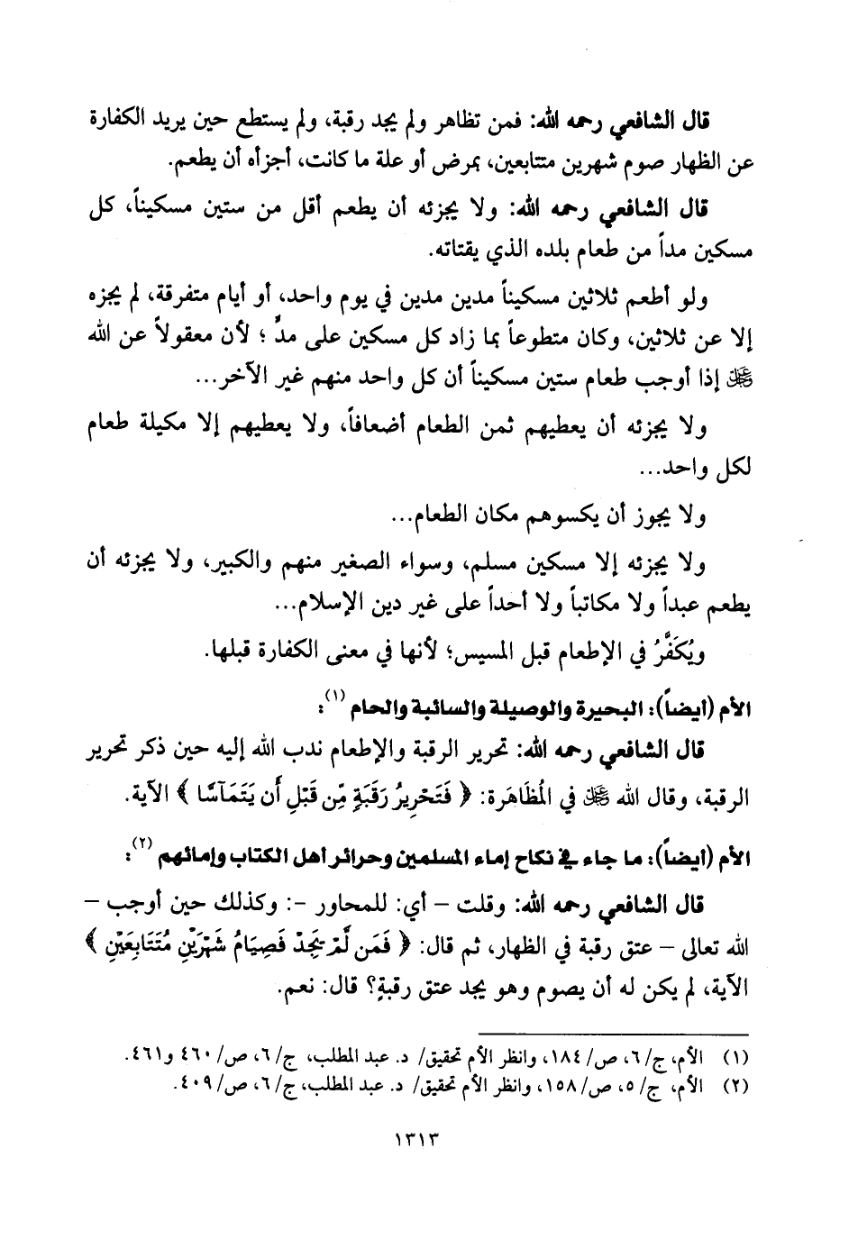 قال الشَّافِعِي رحمه الله: تحرير الرقبة والأطعام ندب اللَّه إليه حين ذكر تحرير