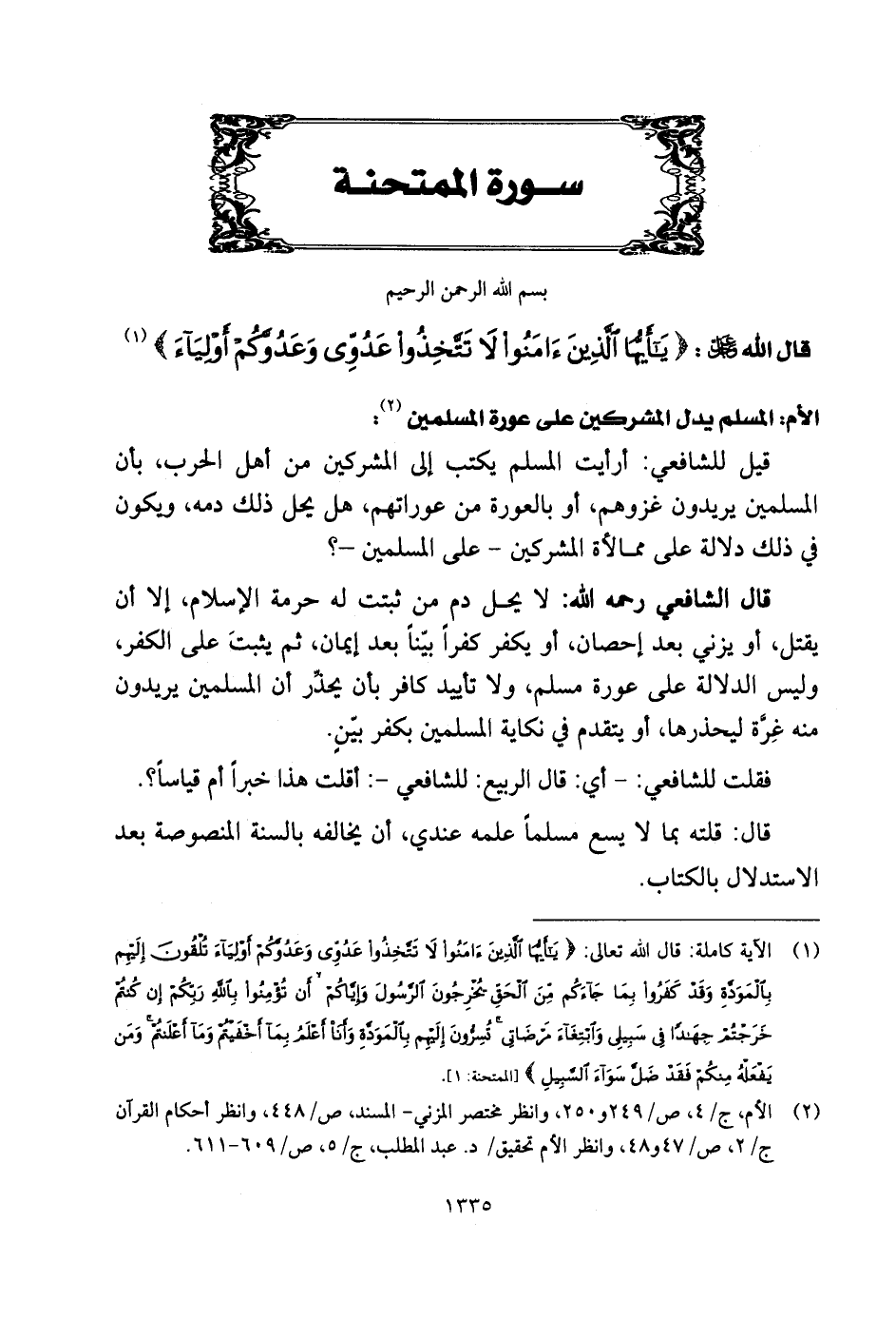 الأم: المسلم يدل المشركين على عورة المسلمين: