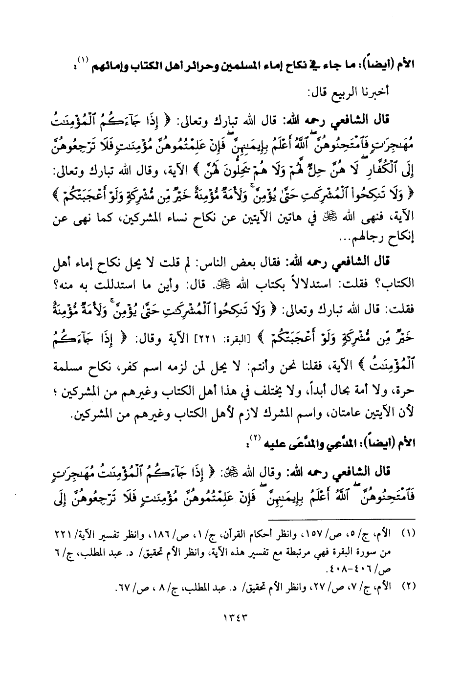 الأم (أيضاً) : ما جاء في نكاح إماء المسلمين وحرائر أهل الكتاب وإمائهم: