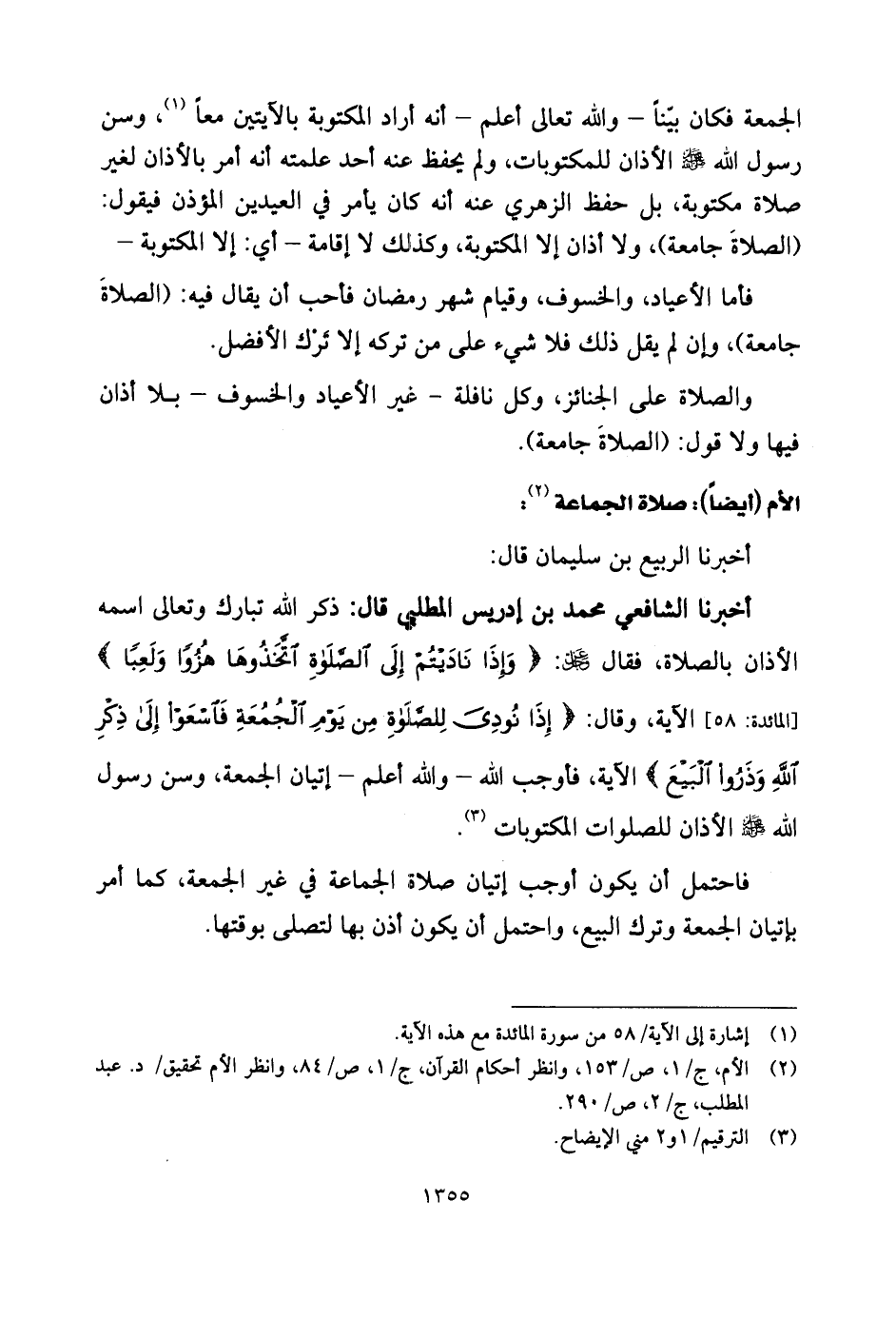 الأم (أيضاً) : صلاة الجماعة: