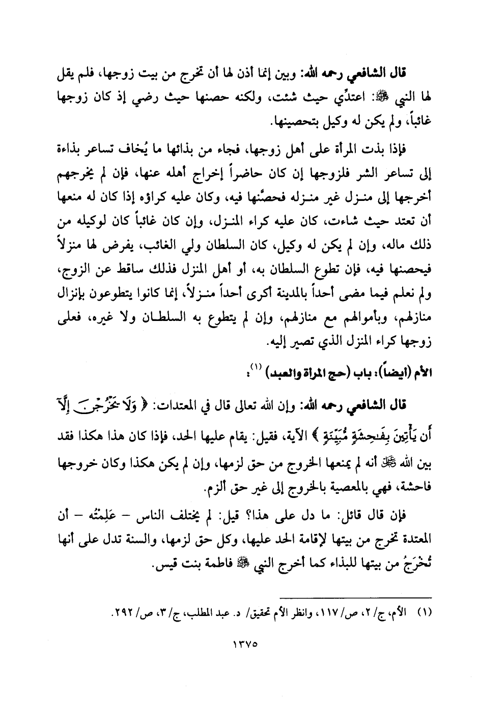 الأم (أيضاً) : باب (حج المرأة والعبد) :