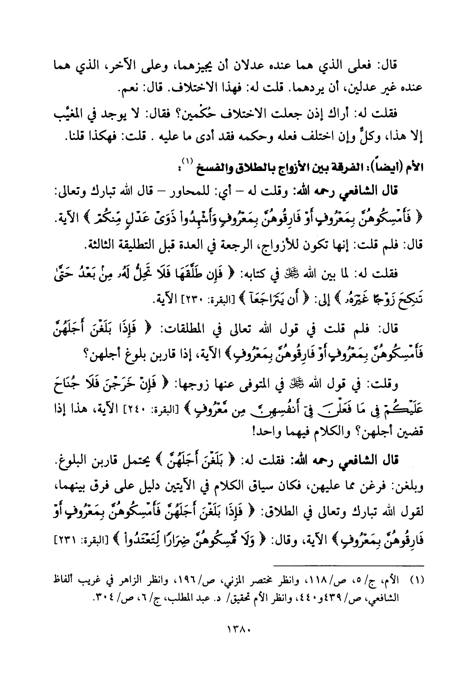 الأم (أيضاً) : الفرقة بين الأزواج بالطلاق والفسخ: