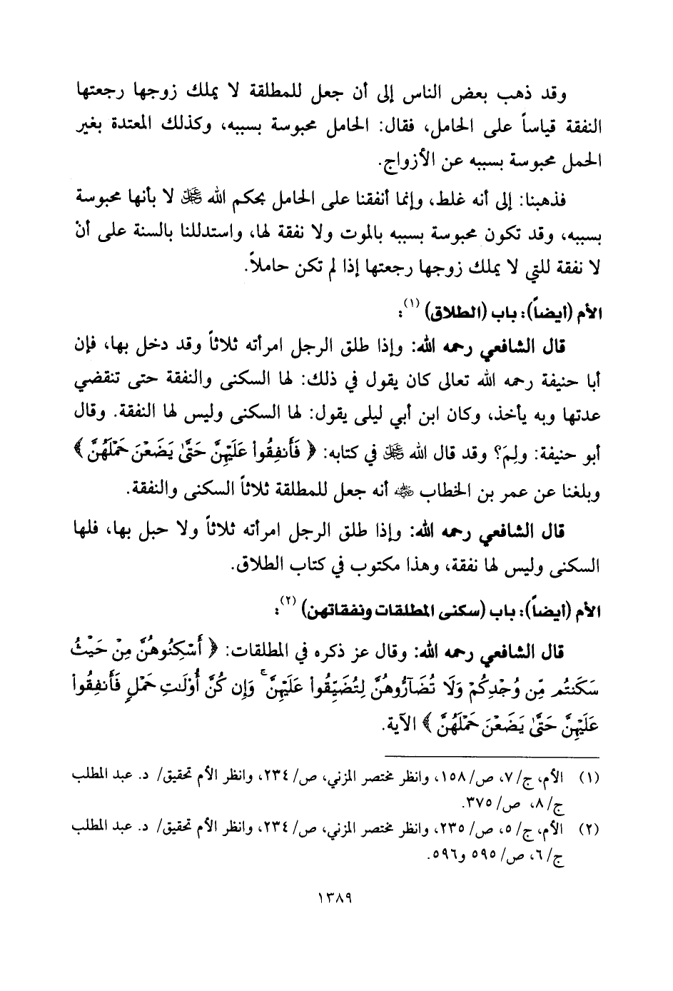 الأم (أيضاً) : باب (سكنى المطلقات ونفقاتهن) :