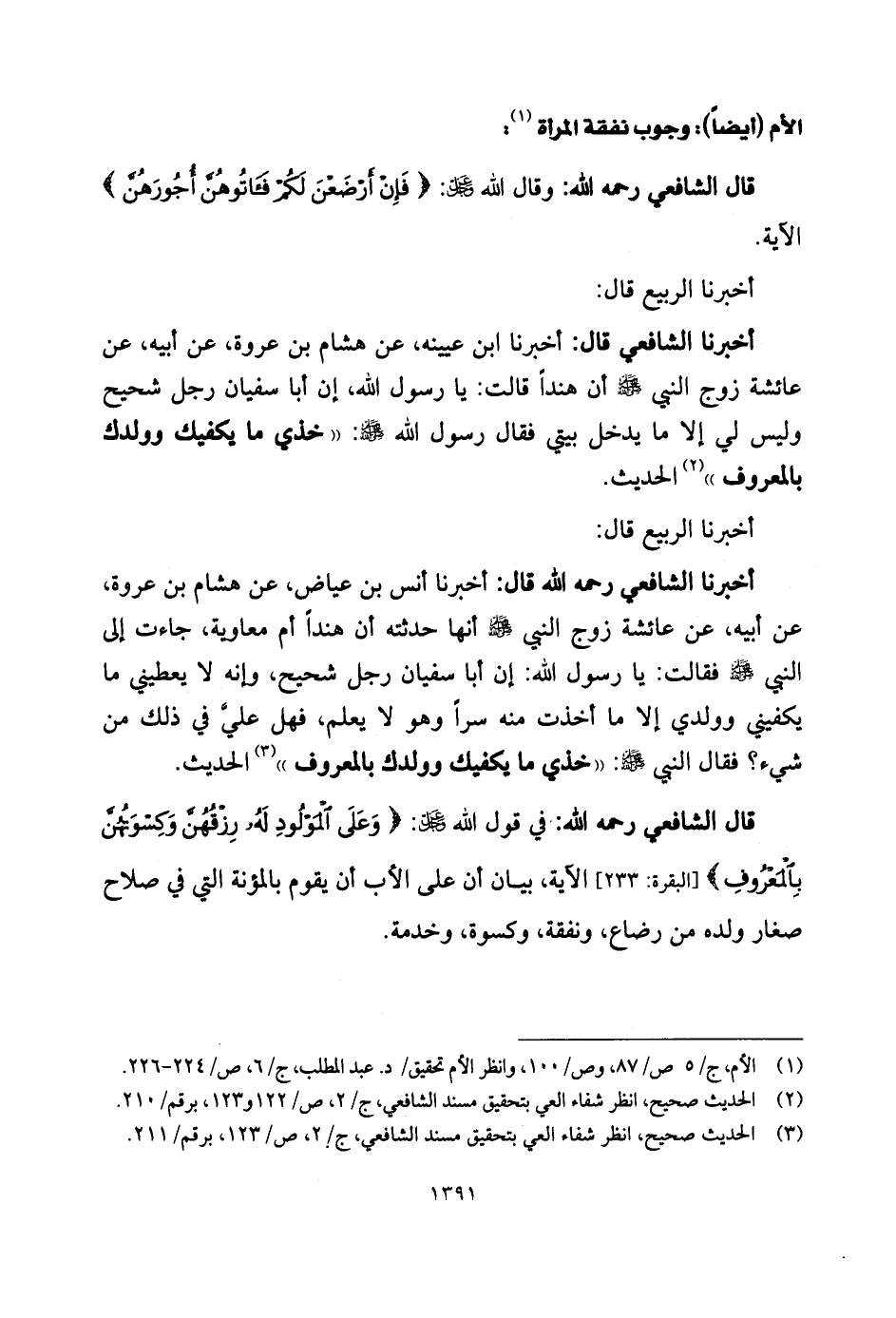 الأم (أيضاً) : وجوب نفقه المرأة)