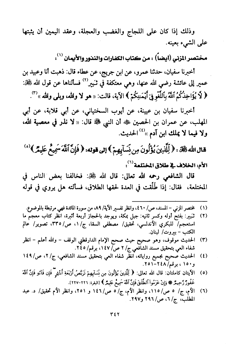 مختصر المزني (أيضاً) : من كتاب الكفارات والنذور والأيمان: