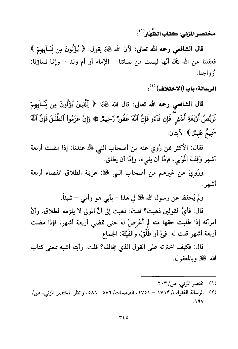 قال الشَّافِعِي رحمه الله تعالى: لأن الله - عز وجل - يقول: (يُؤْلُونَ مِنْ نِسَائِهِمْ)