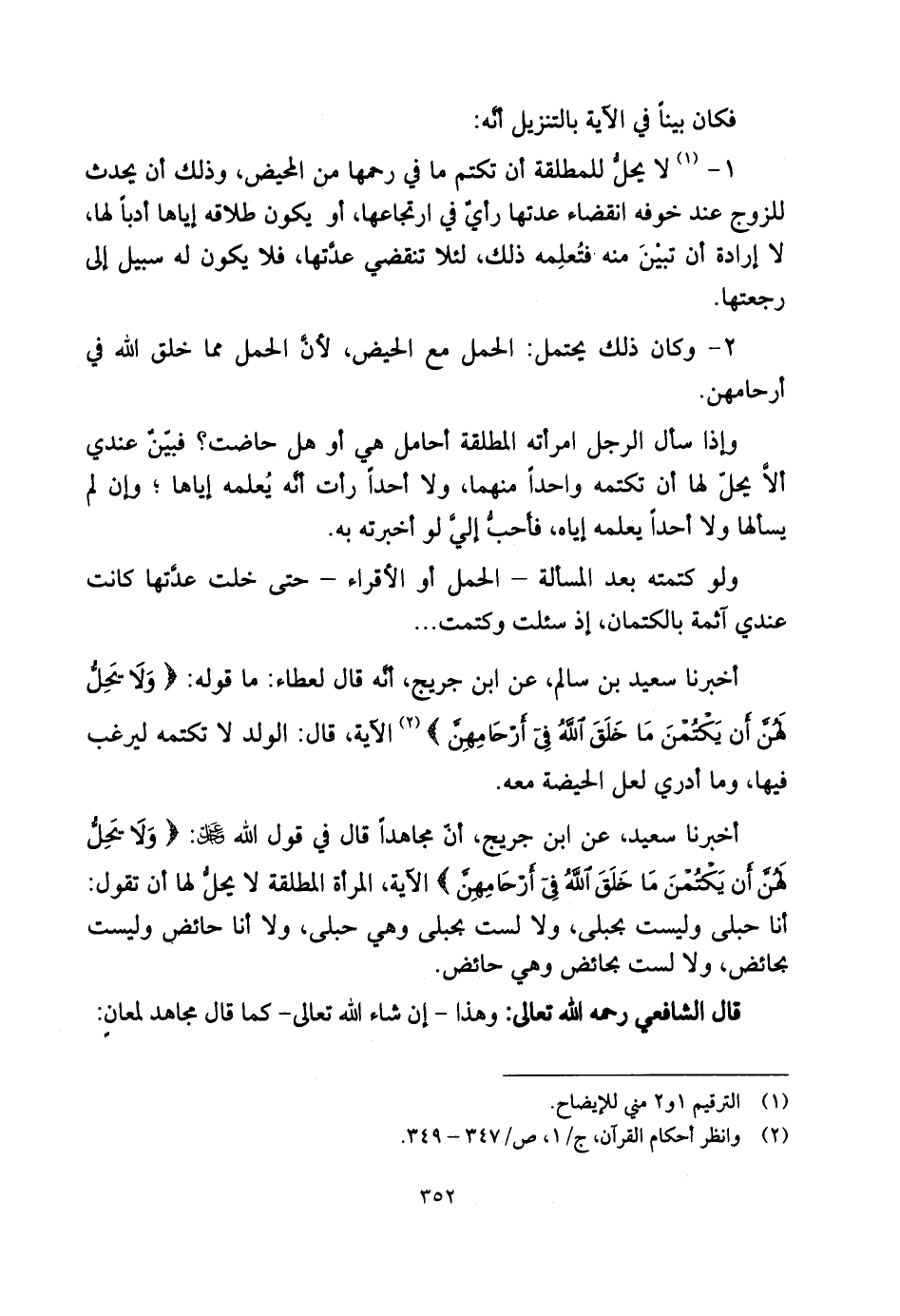 1 - لا يحلُّ للمطلقة أن تكتم ما في رحمها من المحيض، وذلك أن يحدث