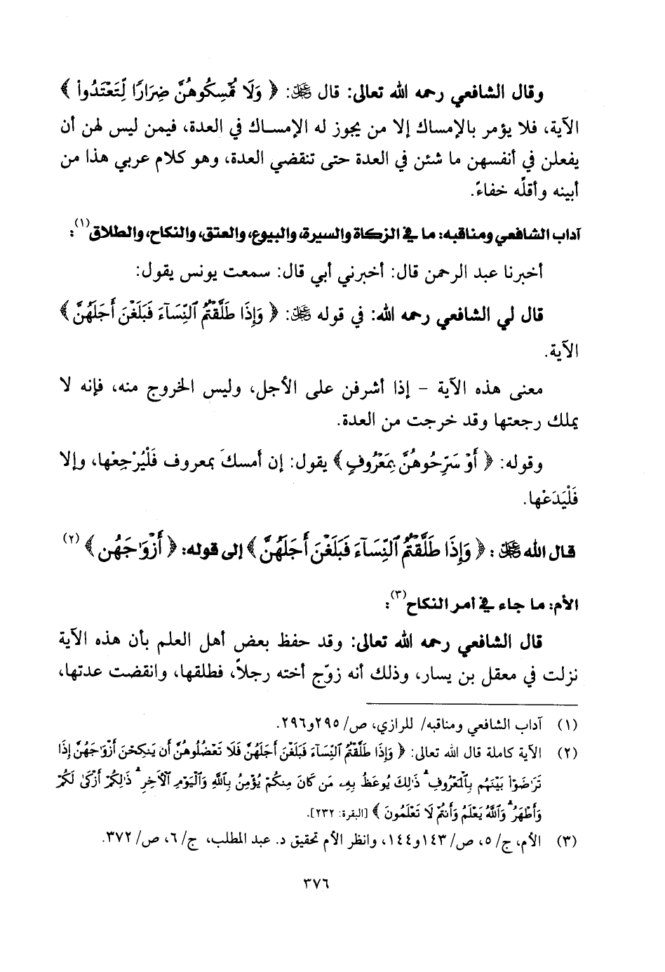 آداب الشَّافِعِي ومناقبه: ما في الزكاة والسيرة والبيومع، والعتق والنكاح، والطلاق: