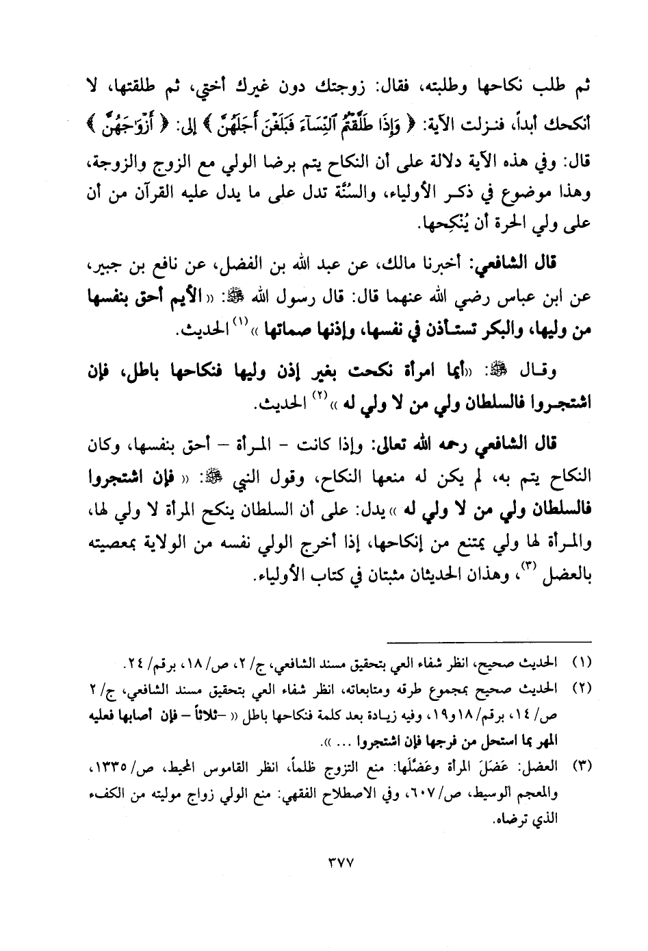 قال الشَّافِعِي رحمه الله تعالى: وإذا كانت - المرأة - أحق بنفسها، وكان
