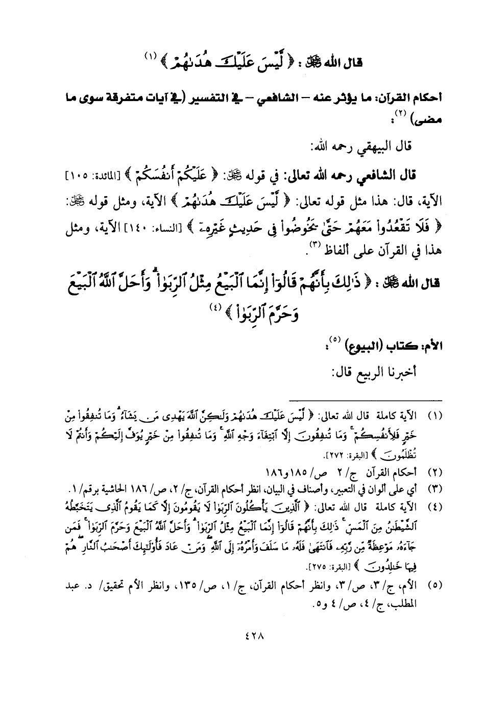 أحكام القرآن: ما يؤثر عنه - الشَّافِعِي - في التفسير (في آيات متفرقة سوى ما مضى) :