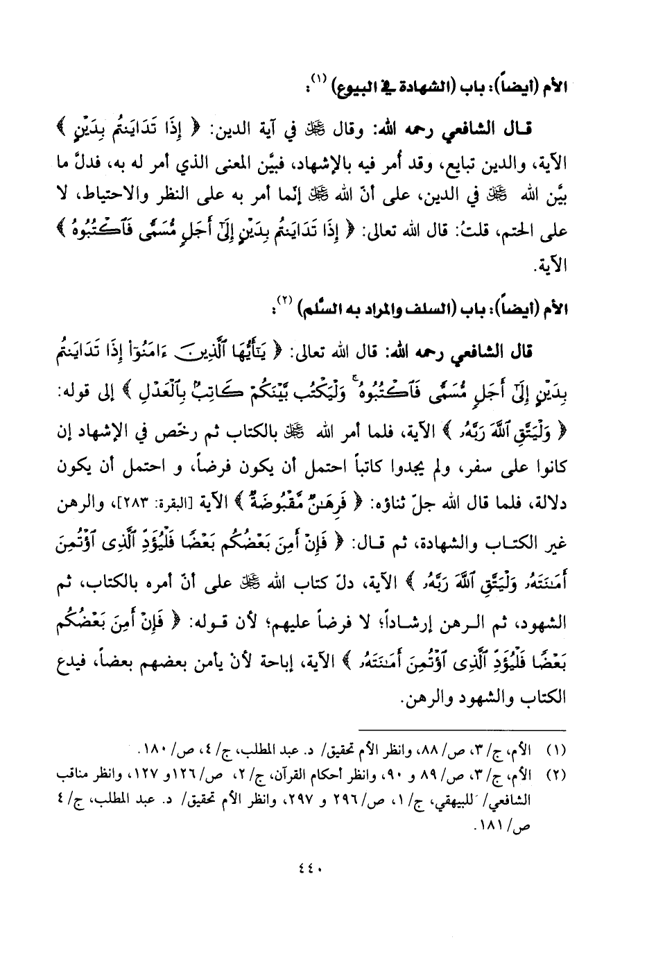 قال الشَّافِعِي رحمه الله: قال اللَّه تعالى: (يَا أَيُّهَا الَّذِينَ آمَنُوا إِذَا تَدَايَنْتُمْ بِدَيْنٍ إِلَى أَجَلٍ مُسَمًّى فَاكْتُبُوهُ وَلْيَكْتُبْ بَيْنَكُمْ كَاتِبٌ بِالْعَدْلِ) إلى قوله: