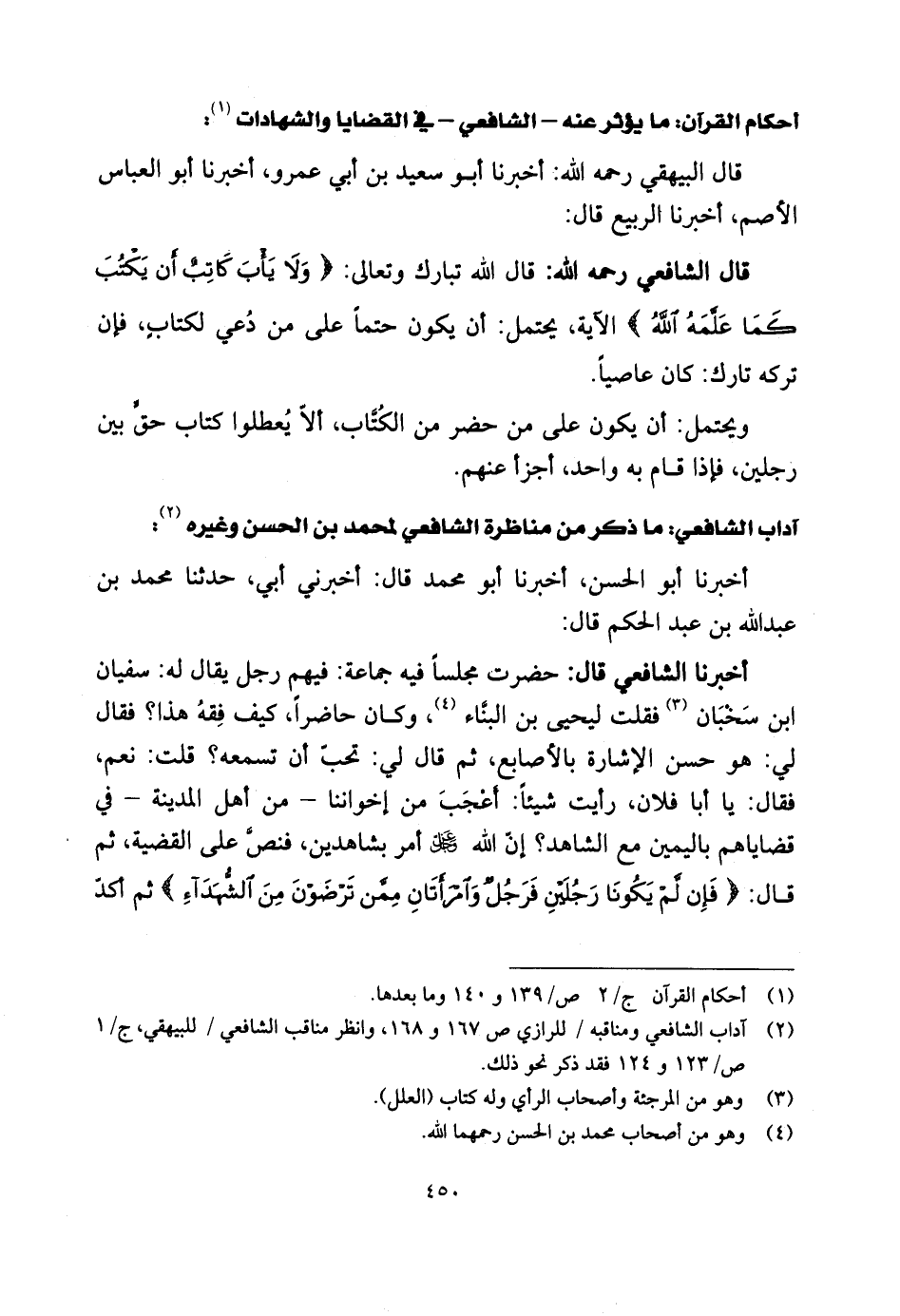 أحكام القرآن: ما يؤثر عنه - الشافعى - في القضايا والشهادات: