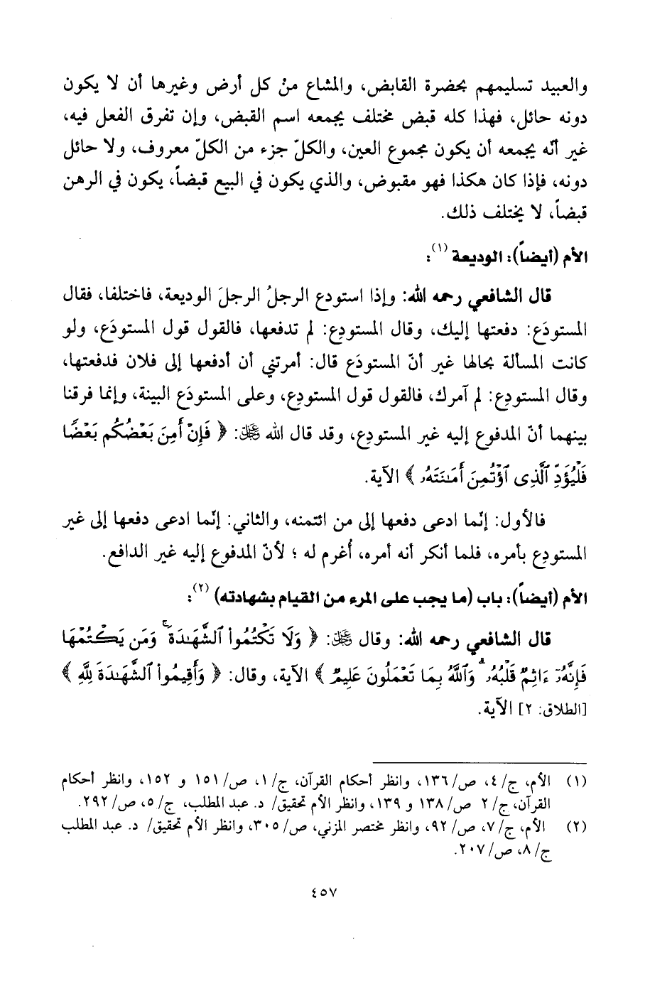قال الشَّافِعِي رحمه الله: وقال - عز وجل -: (وَلَا تَكْتُمُوا الشَّهَادَةَ وَمَنْ يَكْتُمْهَا فَإِنَّهُ آثِمٌ قَلْبُهُ وَاللَّهُ بِمَا تَعْمَلُونَ عَلِيمٌ) الآية.