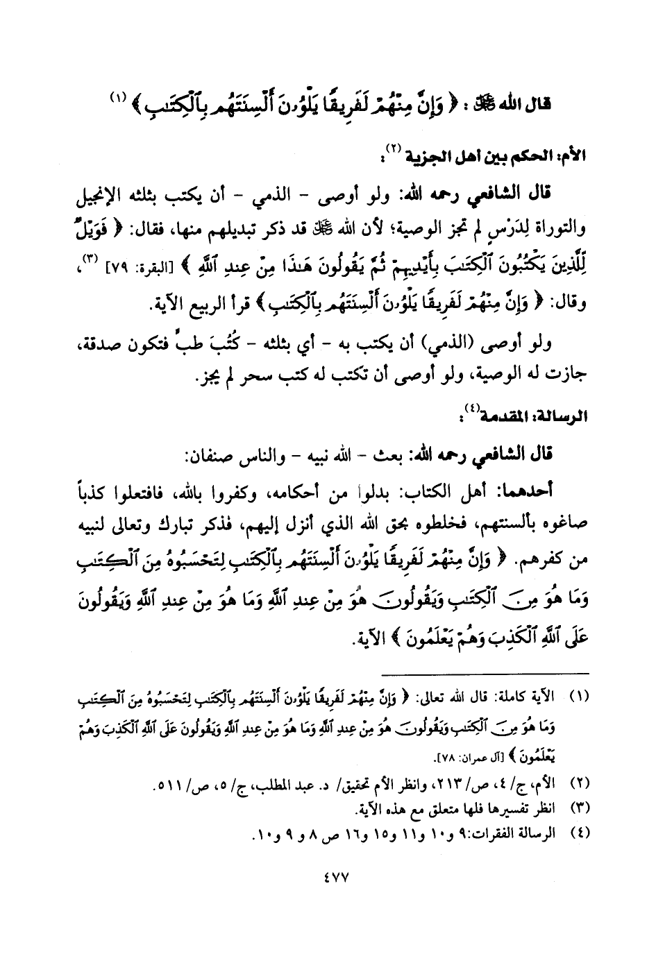 وقال: (وَإِنَّ مِنْهُمْ لَفَرِيقًا يَلْوُونَ أَلْسِنَتَهُمْ بِالْكِتَابِ لِتَحْسَبُوهُ مِنَ الْكِتَابِ)