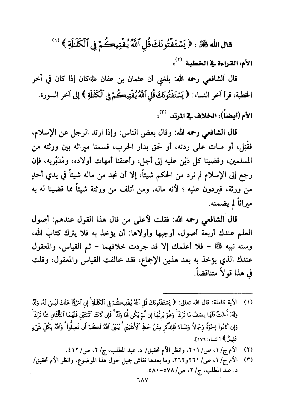 قال الشَّافِعِي رحمه الله: فقلت لأعلى من قال هذا القول عندهم: أصول
