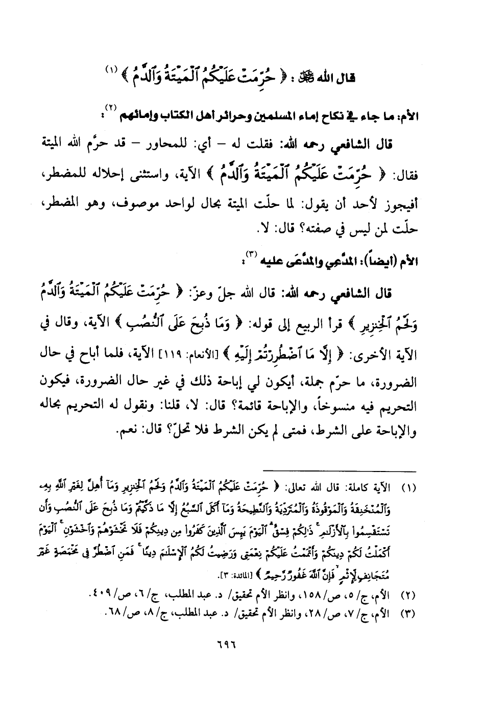 قال الشَّافِعِي رحمه الله: قال الله جلَ وعز: (حُرِّمَتْ عَلَيْكُمُ الْمَيْتَةُ وَالدَّمُ وَلَحْمُ الْخِنْزِيرِ)