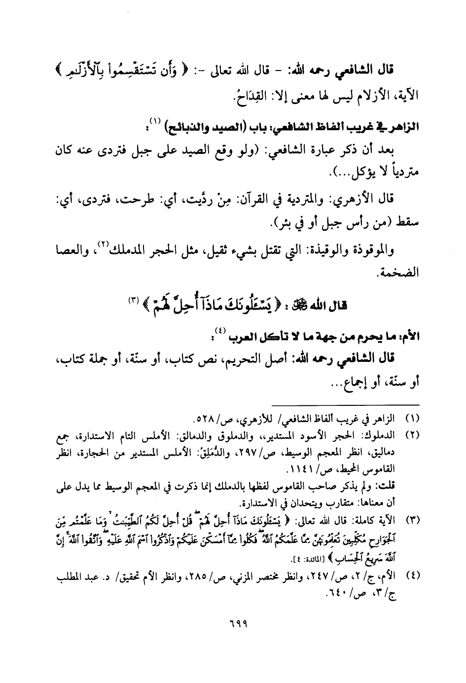 قال الشَّافِعِي رحمه الله: - قال اللَّه تعالى -: (وَأَنْ تَسْتَقْسِمُوا بِالْأَزْلَامِ)