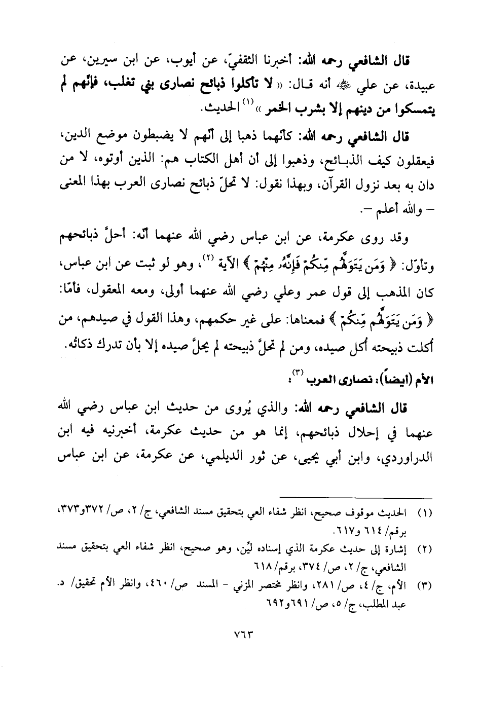 عنهما في إحلال ذبائحهم، إنما هو من حديث عكرمة، أخبرنيه فيه ابن