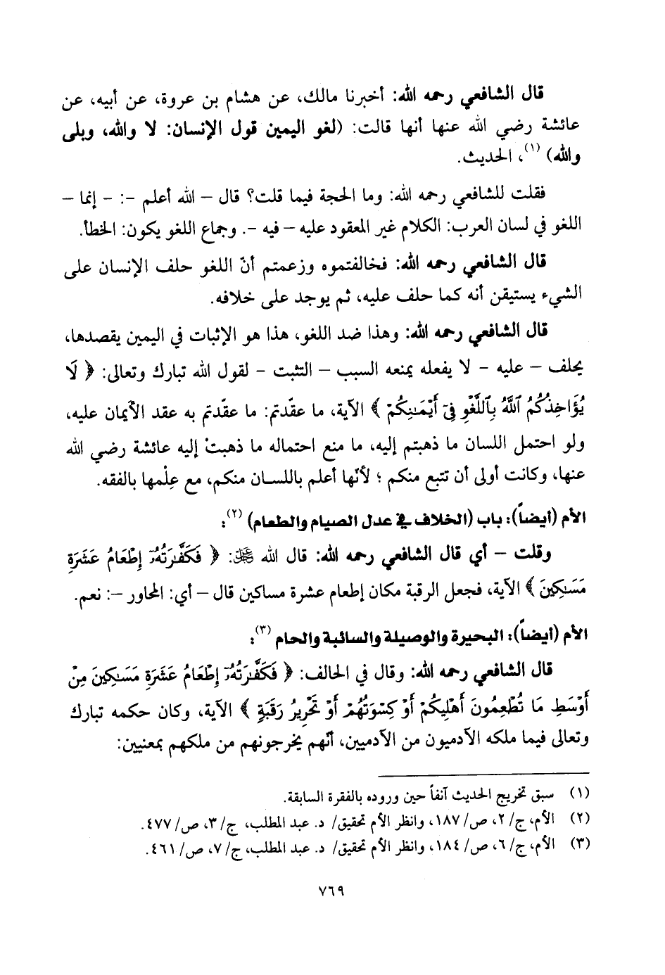 قال الشَّافِعِي رحمه الله: فخالفتموه وزعمتم أنَّ اللغو حلف الإنسان على