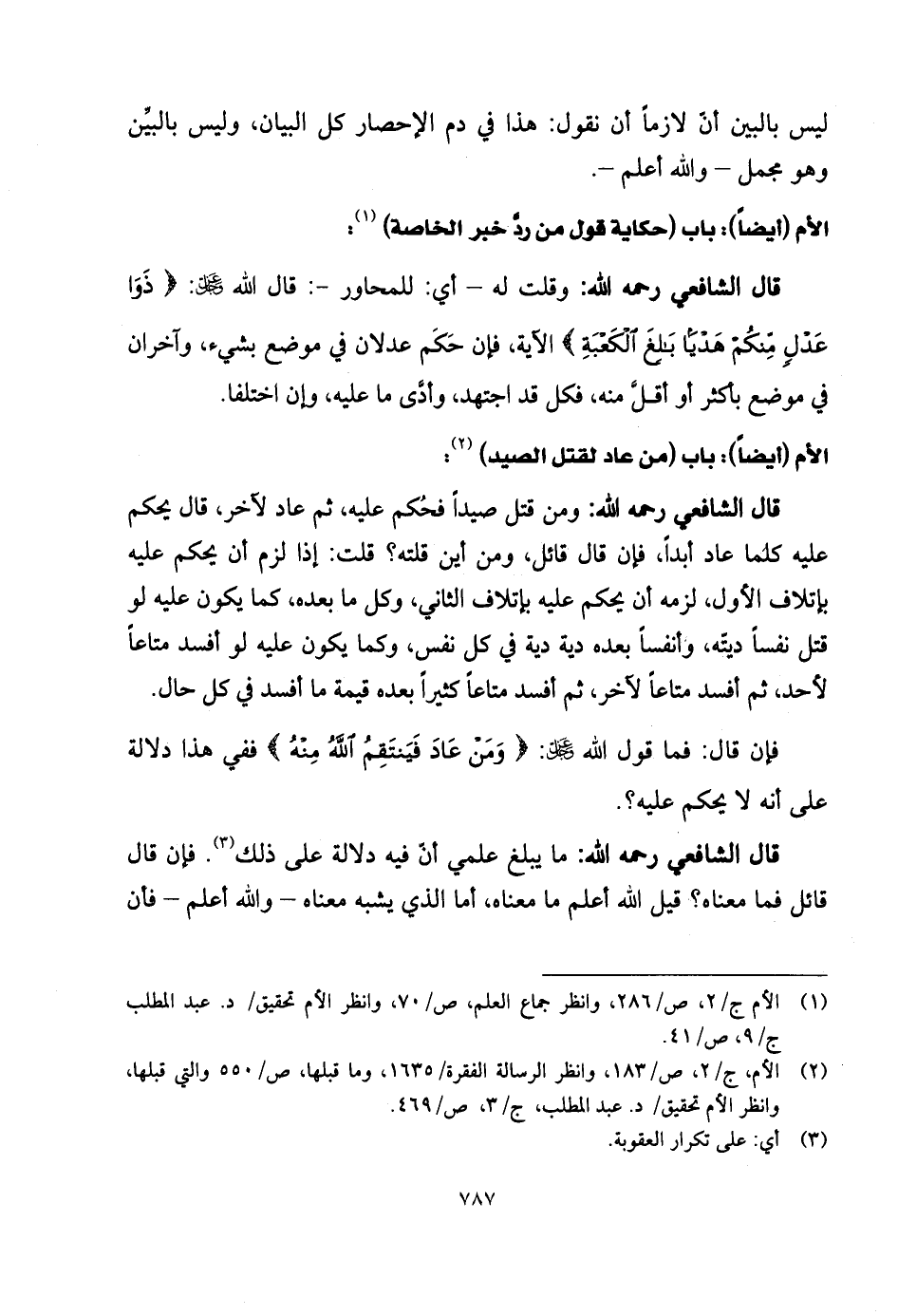 الأم (أيضاً) : باب (من عاد لقتل الصيد) :