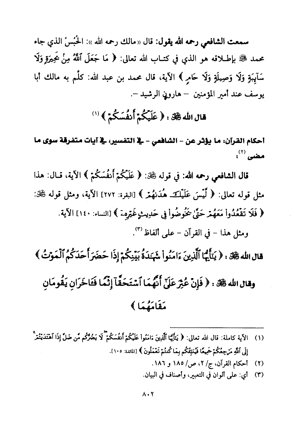 قال الشَّافِعِي رحمه الله: في قوله - عز وجل -: (عَلَيْكُمْ أَنْفُسَكُمْ) الآية، قال: هذا مثل قوله تعالى: (لَيْسَ عَلَيْكَ هُدَاهُمْ)