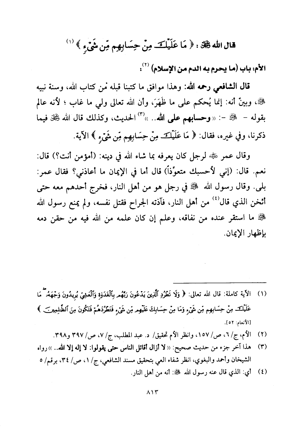 الأم: باب (ما يحرم به الدم من الإسلام) :