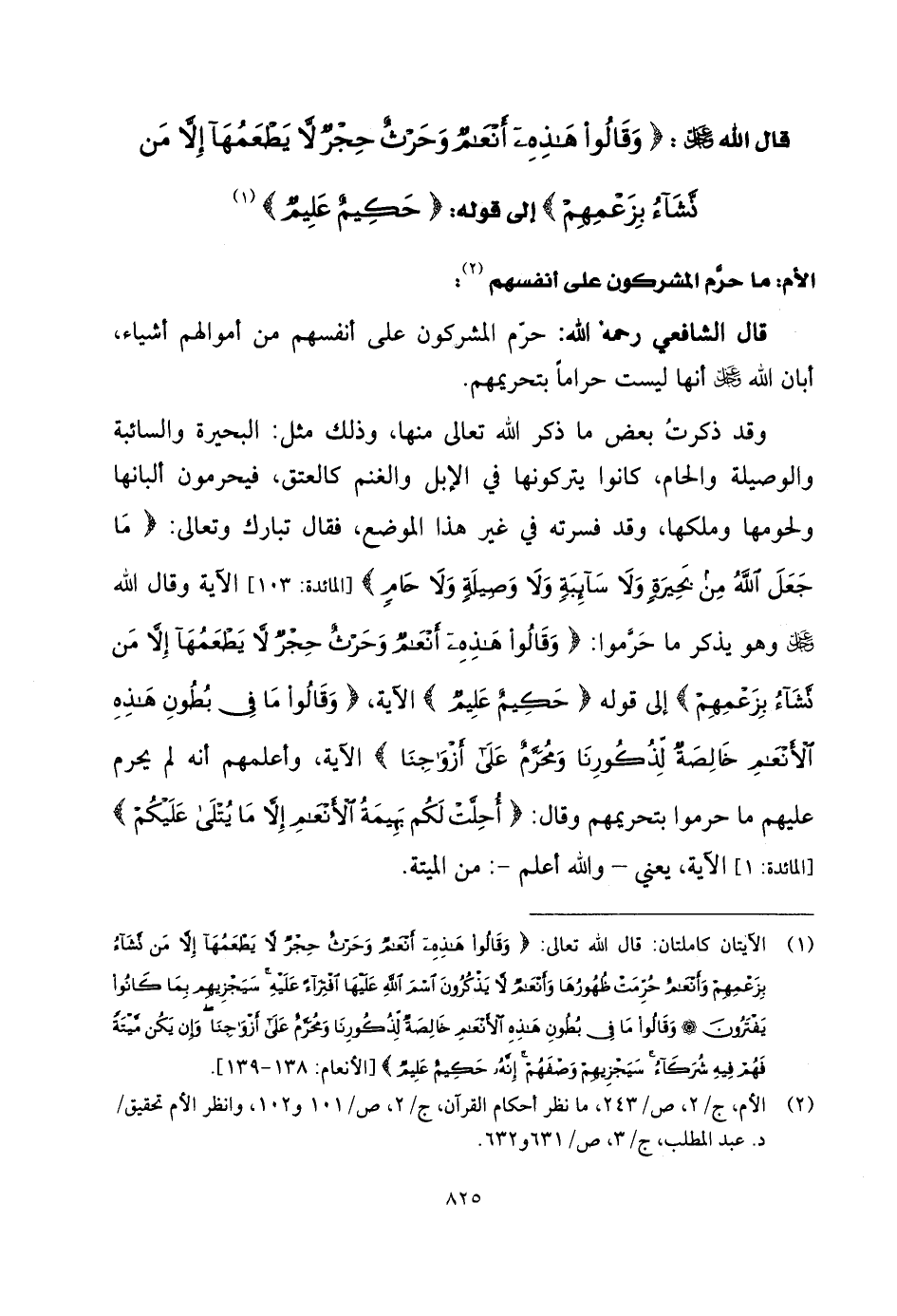 الأم: ما حرّم المشركون على أنفسهم: