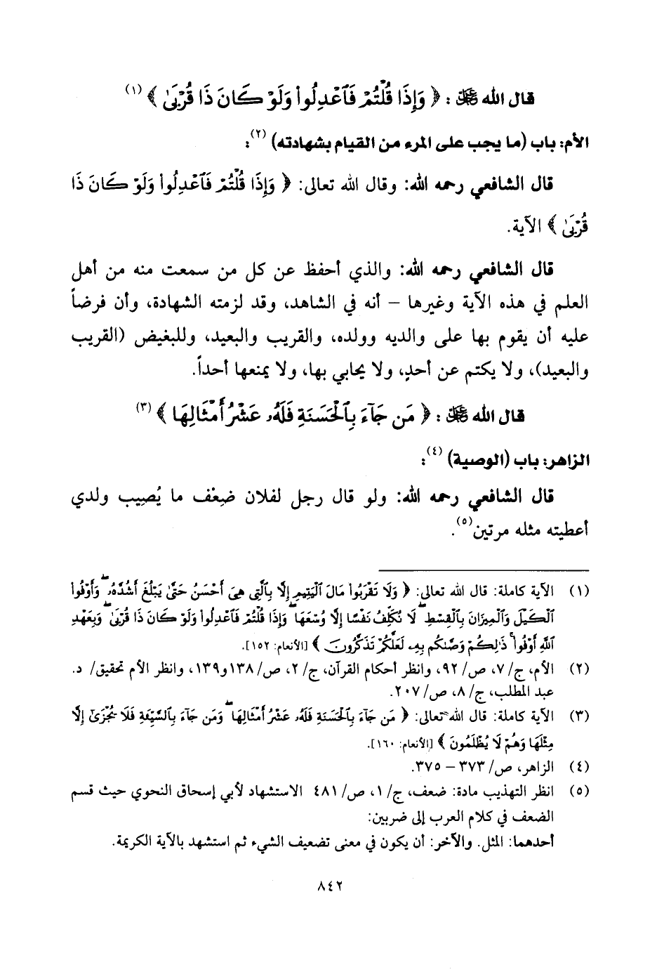 قال الشَّافِعِي رحمه الله: وقال الله تعالى: (وَإِذَا قُلْتُمْ فَاعْدِلُوا وَلَوْ كَانَ ذَا قُرْبَى) الآية.
