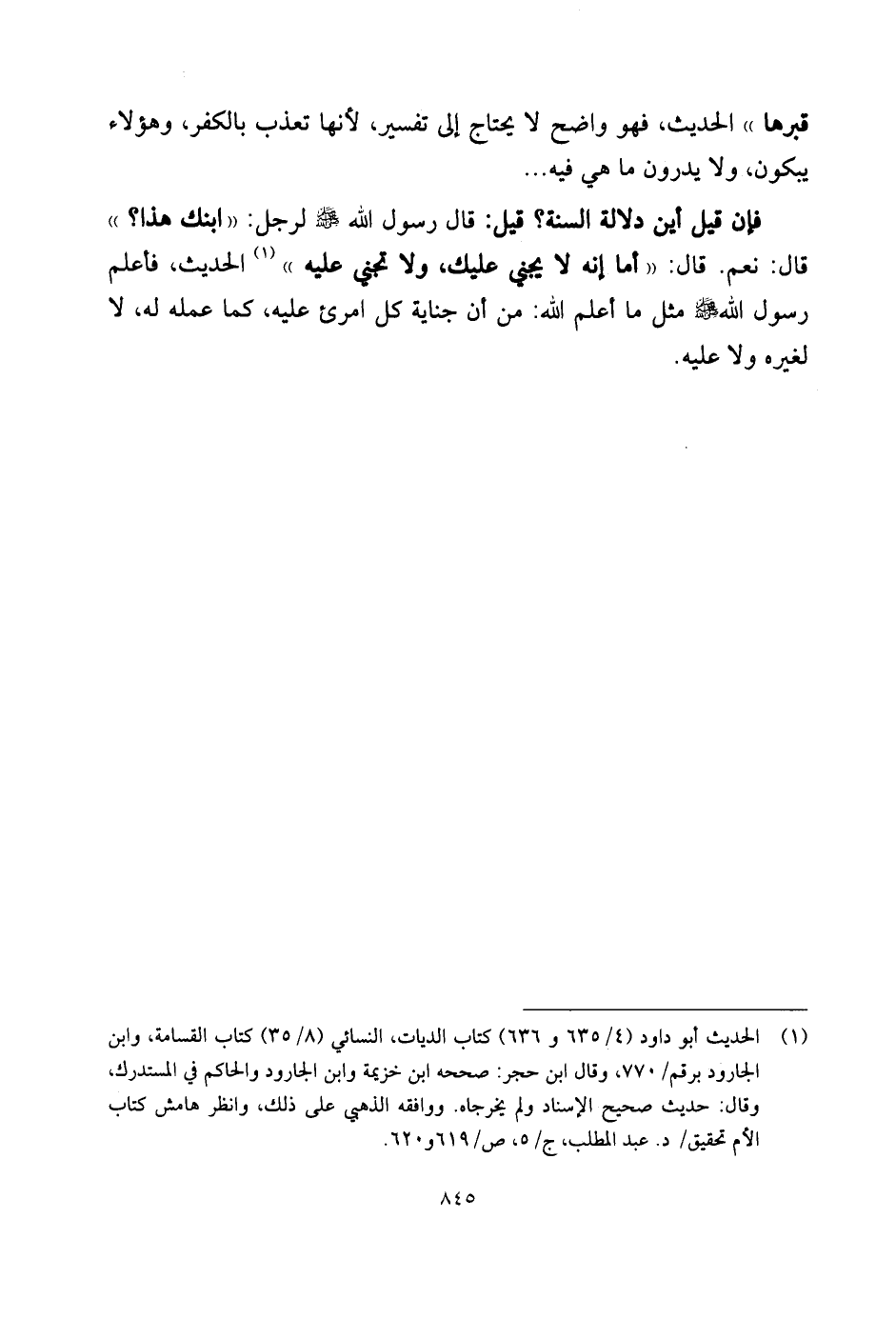 قال: نعم. قال: "أما إنه لا يجني عليك، ولا تجني عليه" الحديث.