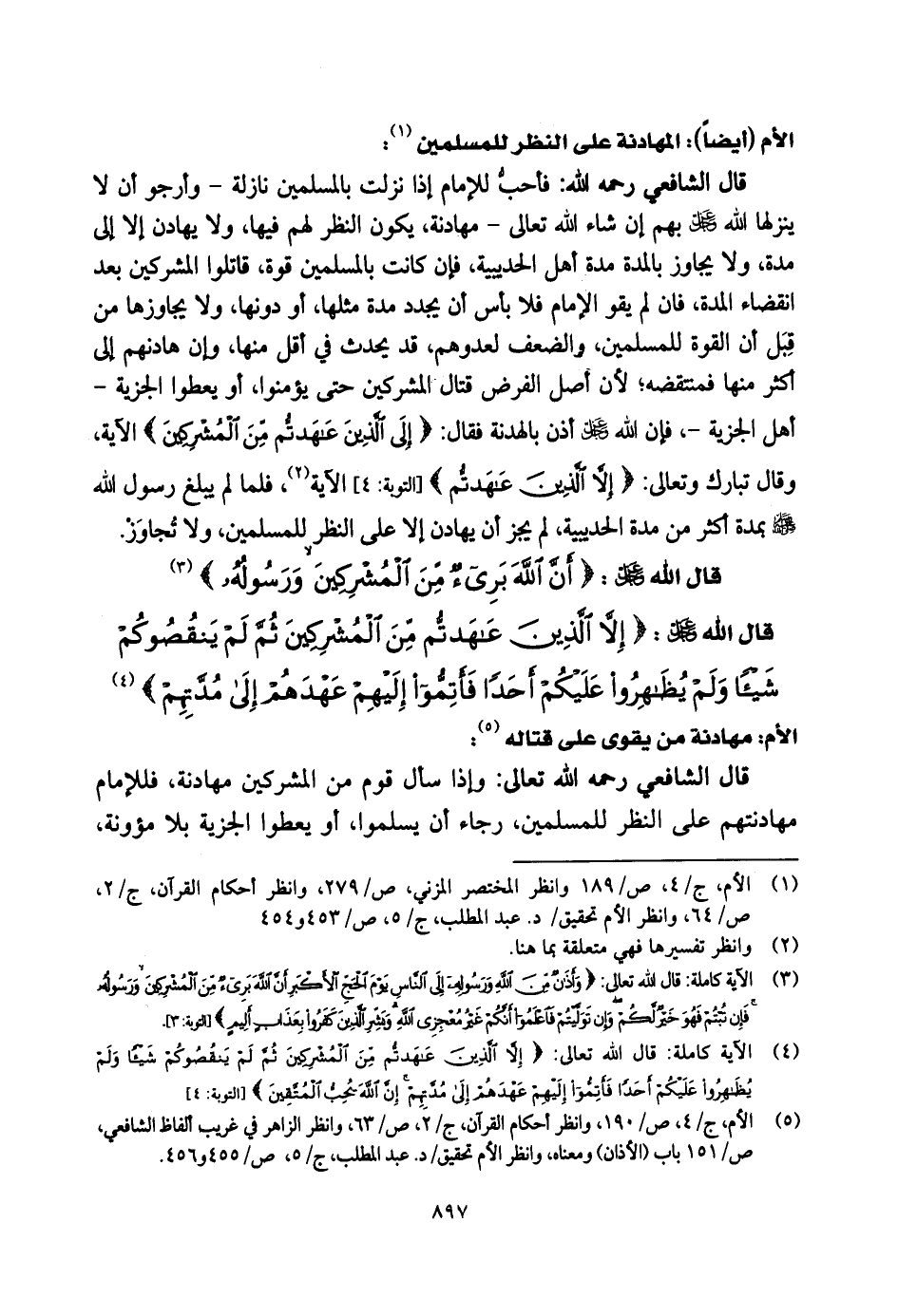 الأم: مهادنة من يقوى على قتاله: