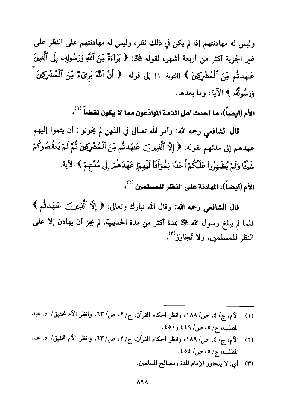 قال الشَّافِعِي رحمه الله: وقال الله تبارك وتعالى: (إِلَّا الَّذِينَ عَاهَدْتُمْ)