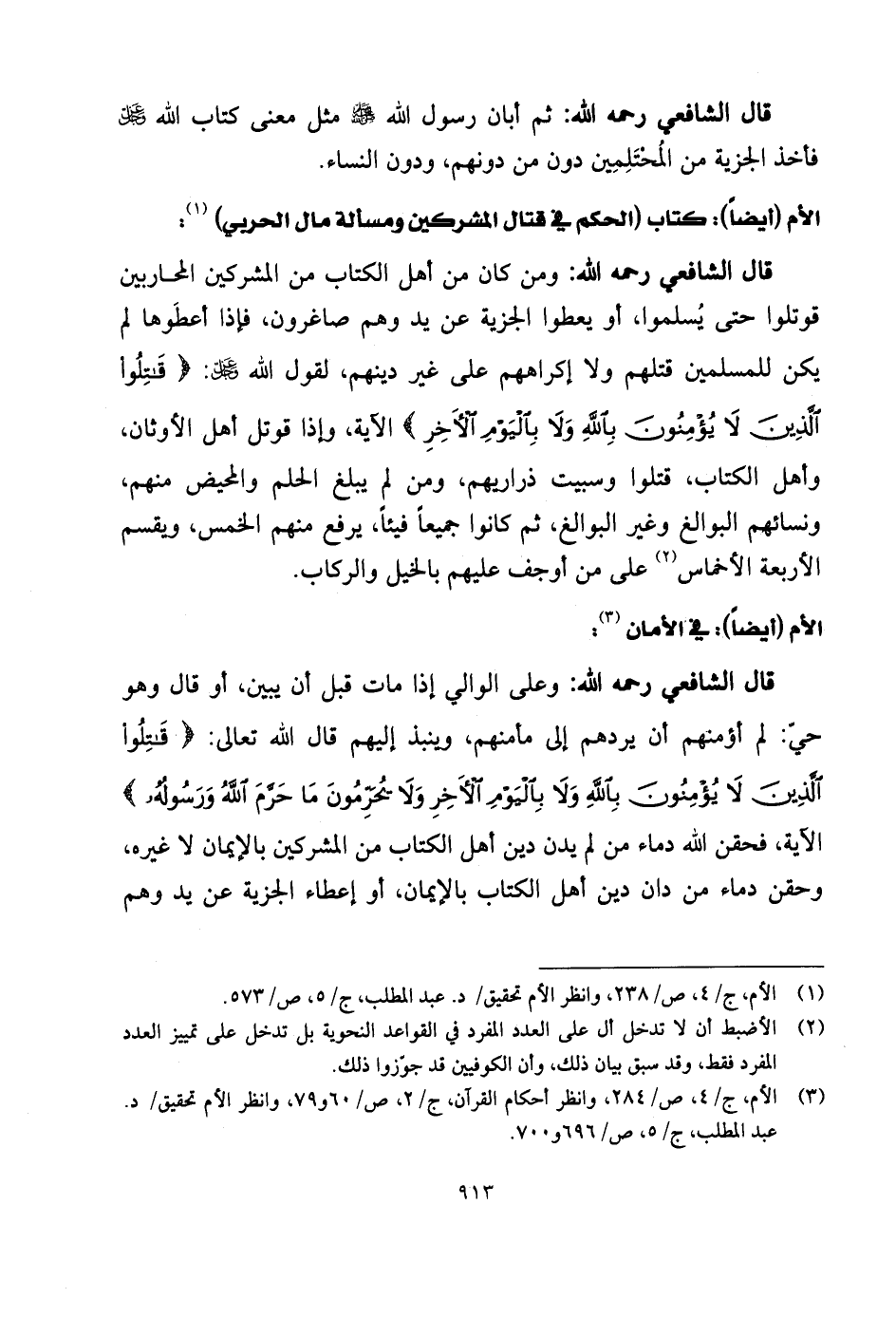 الأم (أيضاً) : كتاب (الحكم في قتال المشركين ومسألة مال الحربى) :